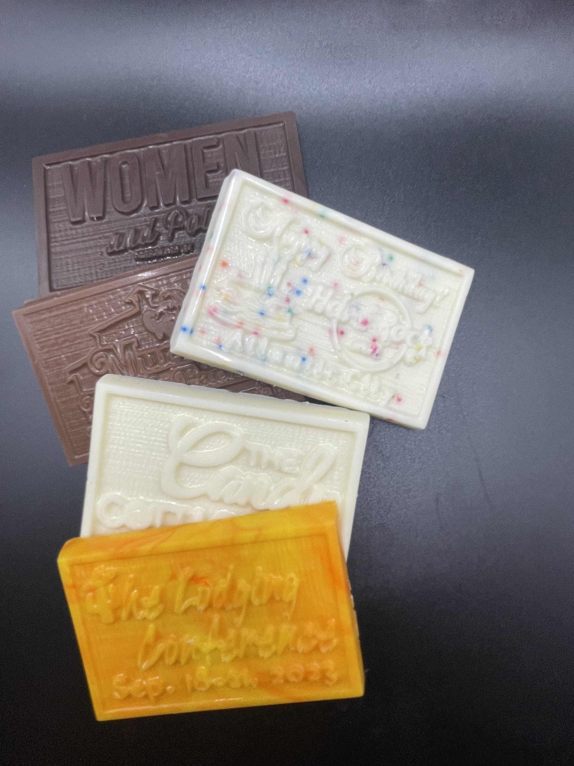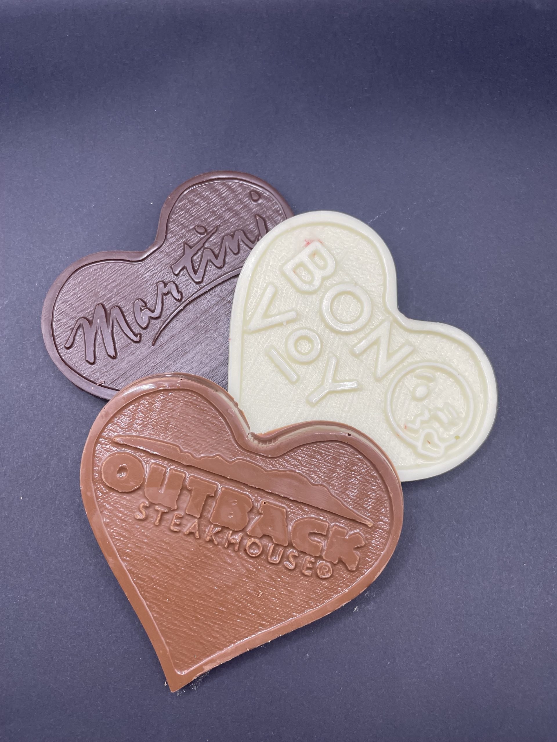 CUSTOM CHOCOLATE MOLDS ARE A SHORTER TURN AROUND TIME AND SHOULD BE ORDERED THREE WEEKS PRIOR TO YOUR EVENT/SHOW.
